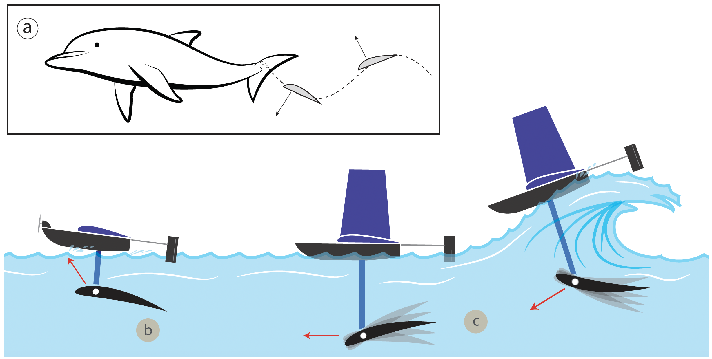 Additionally, a prototype flipper design is presented, featuring individual control of heave and pitch motions, as well as a camber-adjustment mechanism. The integrated system not only provides efficient water-based propulsion but also offers the capacity for generating vertical forces during take-off maneuvers for seaplanes. The design is tailored to harness wave energy, contributing to the exploration of alternative energy resources.